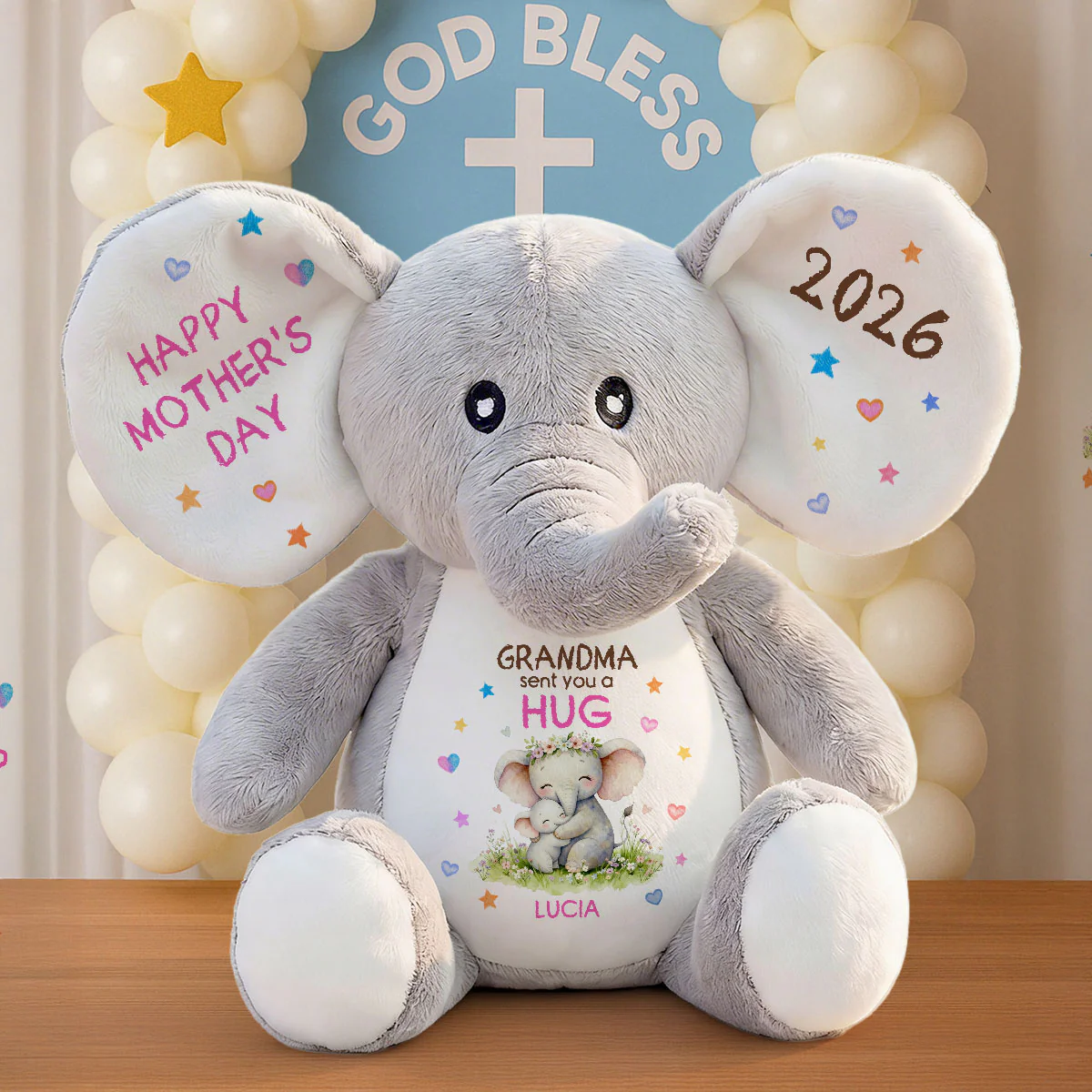 Grandma Sent You A Hug - Personalized Stuffed Elephant